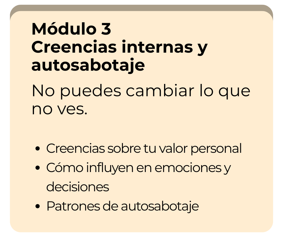 Amarme Bien es un programa profundo de 8 semanas que te acompaña a revisar, comprender y transformar la relación que tienes contigo misma.